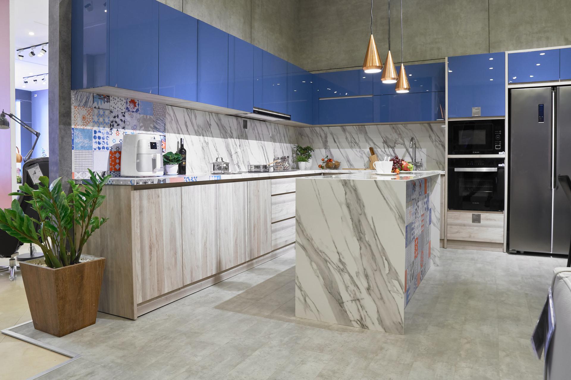 • Sự kết hợp hài hòa giữa chất liệu, màu sắc và kiểu dáng tạo nên không gian bếp đẹp mắt, sang trọng và đẳng cấp.