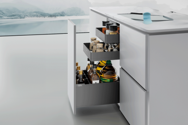 - Cấu trúc tiện lợi: Giá gia vị 3 tầng với ngăn kéo dưới rộng rãi chứa được hầu hết các loại chai lọ, giúp tổ chức không gian bếp ngăn nắp, dễ lấy khi sử dụng.