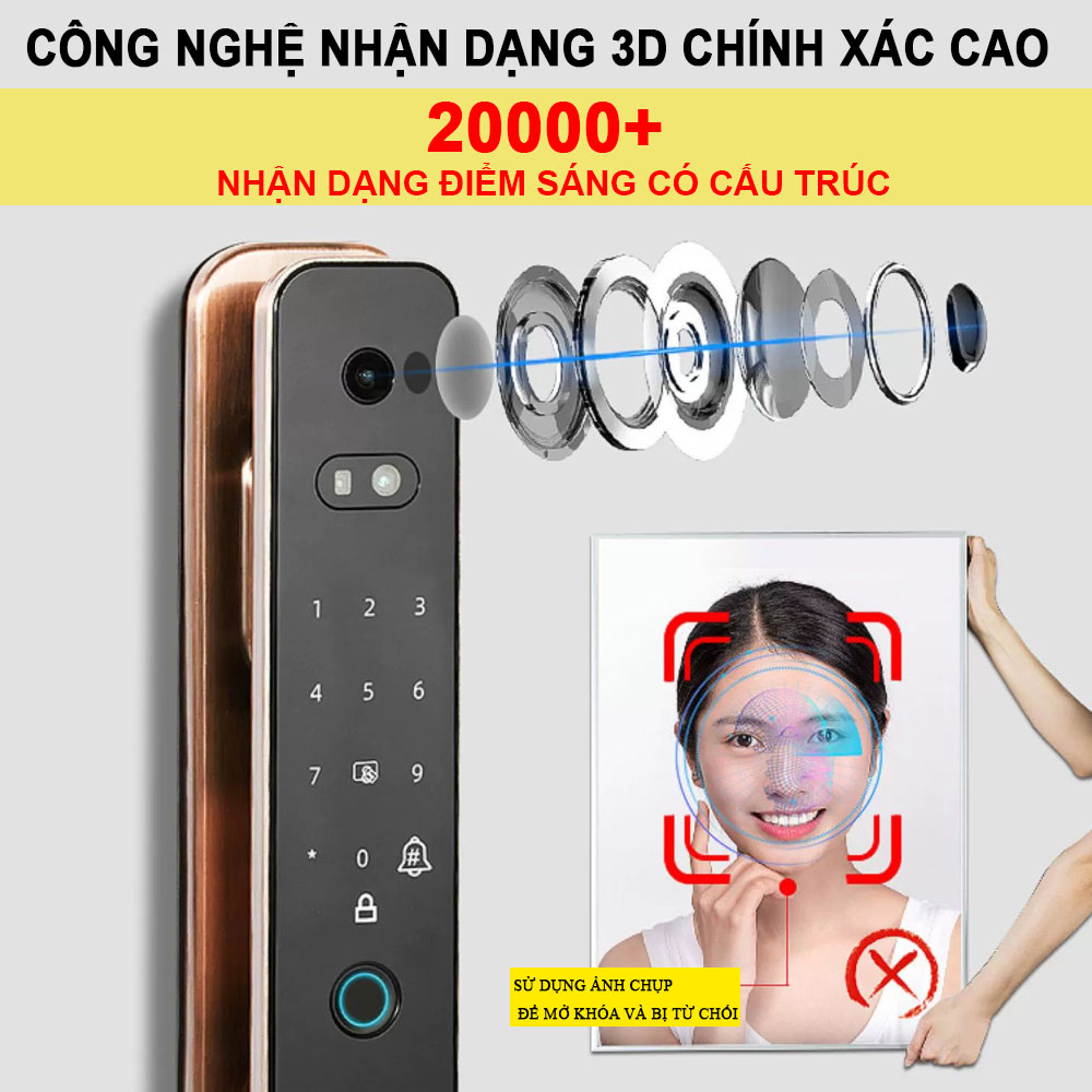 Phương thức mở khóa Nhận diện khuôn mặt 3D TOF, vân tay AI, mật mã, thẻ từ, chìa cơ, App Usmart Go, Video Call