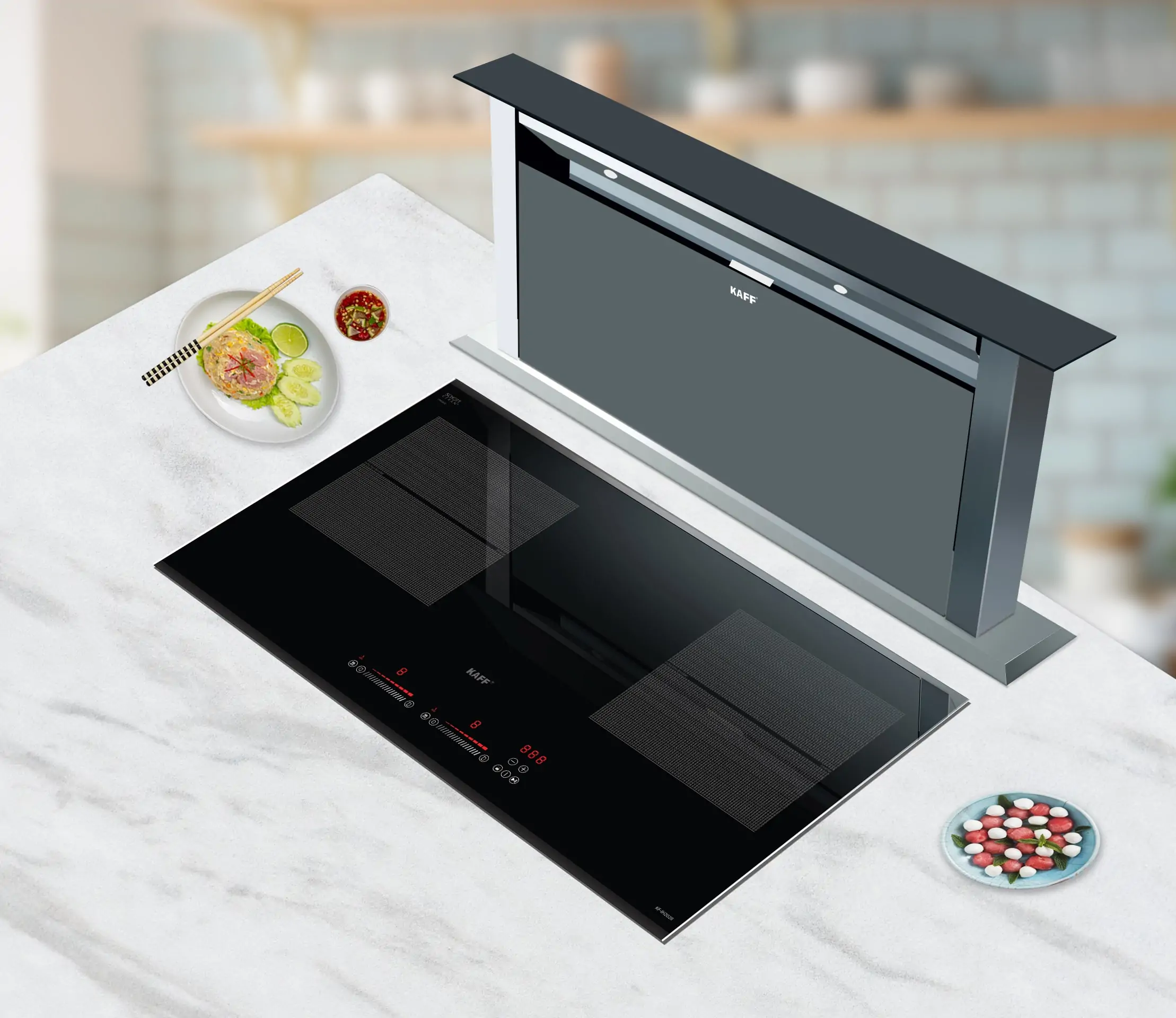 Máy hút mùi âm bàn bếp KAFF KF-AT900 là dòng máy hút mùi thiết kế dạng âm mặt đá bếp hiện đại, thông minh đến từ thương hiệu nổi tiếng KAFF của Đức có trụ sở chính tại Ấn Độ với hơn 20 nhà máy sản xuất đặt tại nhiều Quốc Gia trên Thế Giới. Máy được sản xuất trên dây chuyền công nghệ hiện đại theo tiêu chuẩn Châu Âu. Sử dụng chức năng khử mùi trực tiếp bằng than hoạt tính phù hợp hầu hết mọi không gian nấu nướng, mang đến không khí trong lành cho gian bếp Nhà bạn.
