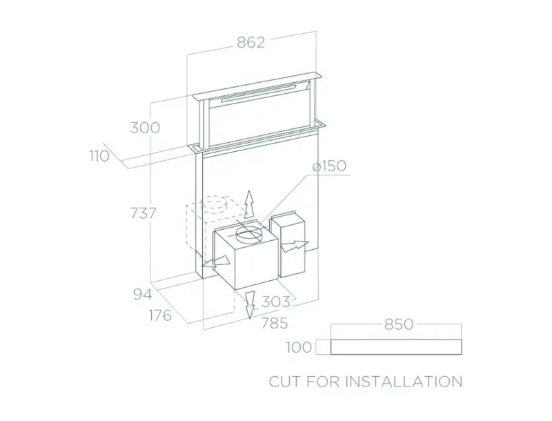 Máy hút mùi âm bàn Elica GETUP IX/A/90 PRF0161680 sử dụng cơ cấu nâng hạ được lắp đặt phía sau bếp nấu, trên một không gian độc lập, trong một hốc gần sát tường. Động cơ Turbin đôi giúp hoạt động mạnh mẽ với mức công suất cao đảm bảo đem lại không khí trong lành cho phòng bếp của bạn trong quá trình sử dụng nhất là khi nấu các món nặng mùi.