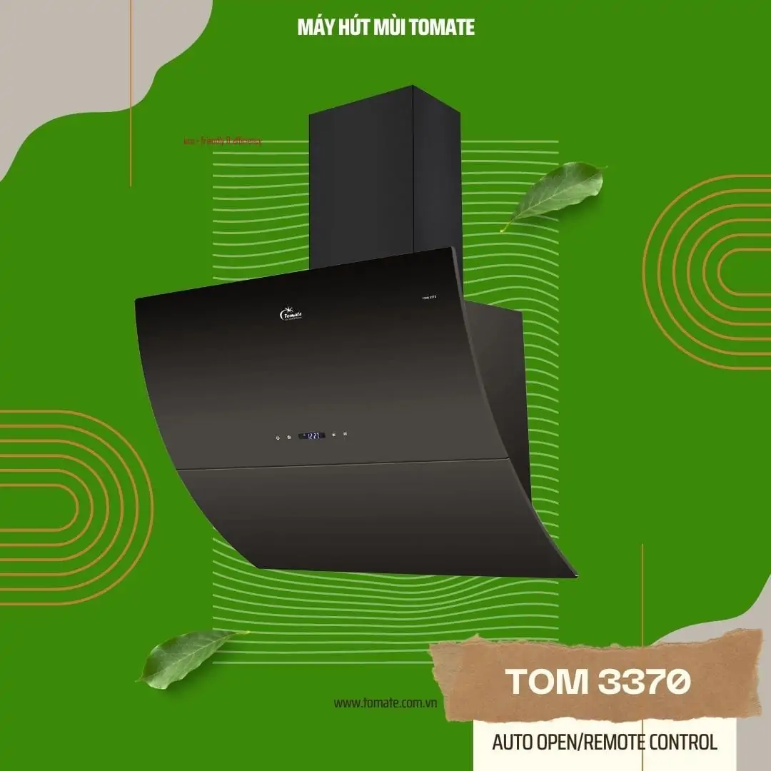 Máy hút mùi kính vát TOMATE TOM 3370 là dòng máy hút mùi thiết kế dạng kính vát cong bếp hiện đại, thông minh đến từ thương hiệu nổi tiếng TOMATE – TÂY BAN NHA. Máy được sản xuất trên dây chuyền công nghệ hiện đại theo tiêu chuẩn Châu Âu. Kết hợp 2 chức năng khử mùi trực tiếp bằng than hoạt tính và thoát ống ra ngoài phù hợp hầu hết mọi không gian nấu nướng, mang đến không khí trong lành cho gian bếp Nhà bạn.