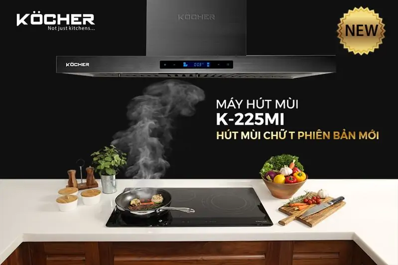 Máy Hút Mùi Kocher K-225MI là dòng máy hút mùi thiết kế dạng chữ T hiện đại, thông minh lắp áp tường. Máy được sản xuất tại Malaysia trên dây chuyền công nghệ hiện đại theo tiêu chuẩn Châu Âu. Kết hợp 2 chức năng khử mùi trực tiếp bằng than hoạt tính và thoát ống ra ngoài phù hợp hầu hết mọi không gian nấu nướng, mang đến không khí trong lành cho gian bếp Nhà bạn.