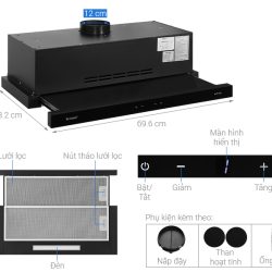 Với công suất hút 620 m³/h, máy dễ dàng loại bỏ hoàn toàn khói, mùi thức ăn và hơi dầu mỡ, giúp không gian bếp luôn sạch thoáng và dễ chịu. Động cơ hoạt động êm ái, tiết kiệm điện năng.
