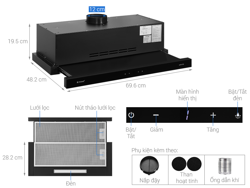 Chế độ hút: Xả trực tiếp / tuần hoàn bằng than hoạt tính