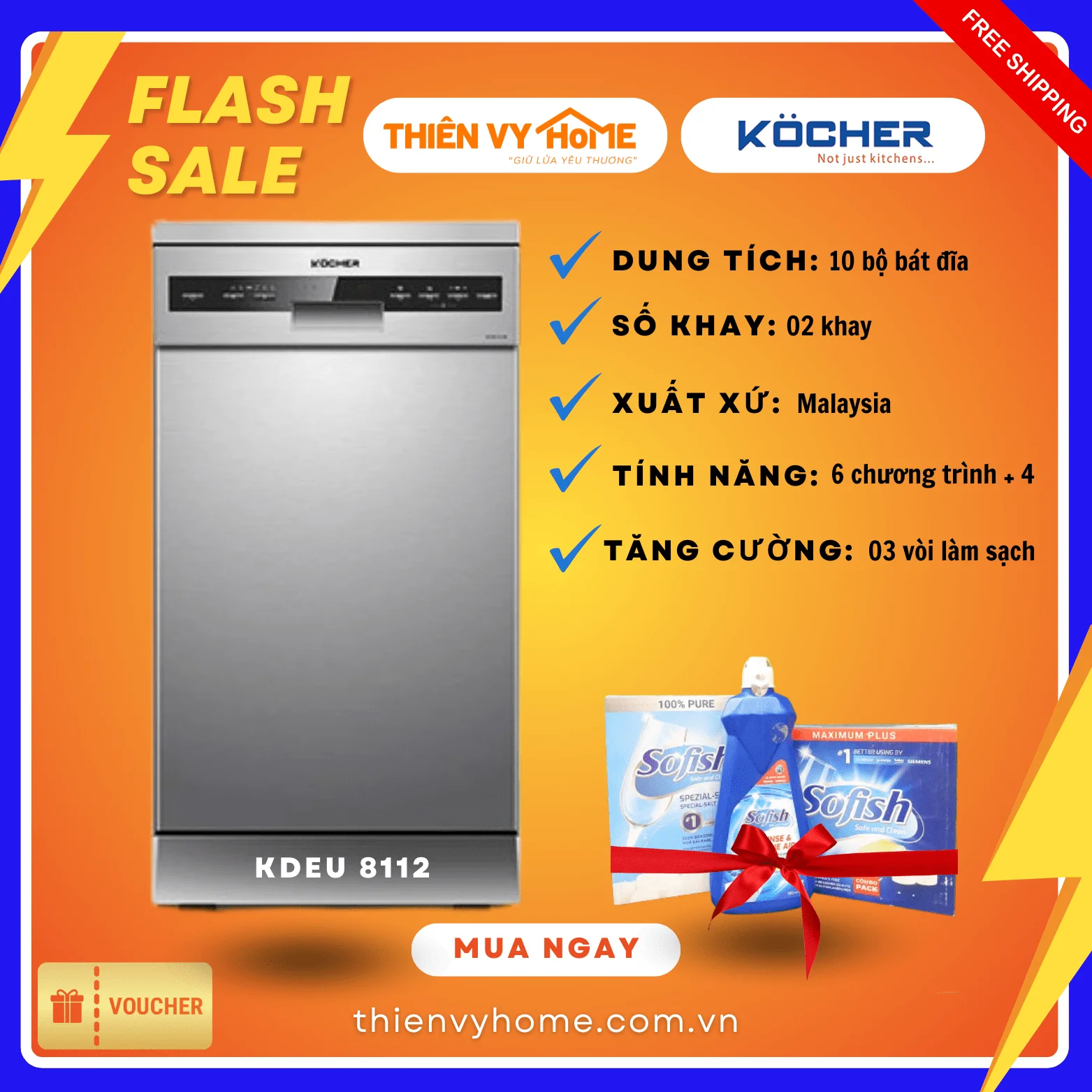 Máy Rửa Bát Kocher KDEU 8112 là dòng máy cao cấp được sản xuất trên dây truyền công nghệ theo tiêu chuẩn, chất lượng Châu Âu với dung tích lên đến 10 bộ bát đĩa. Máy có thiết kế lắp độc lập hay âm tủ đều được giúp tối ưu không gian. Được tích hợp nhiều tính năng hiện đại, tiên tiến nhất hiện nay để loại bỏ vi khuẩn, chất gây hại làm tiết kiệm nước cũng như thời gian và công sức cho người sử dụng.