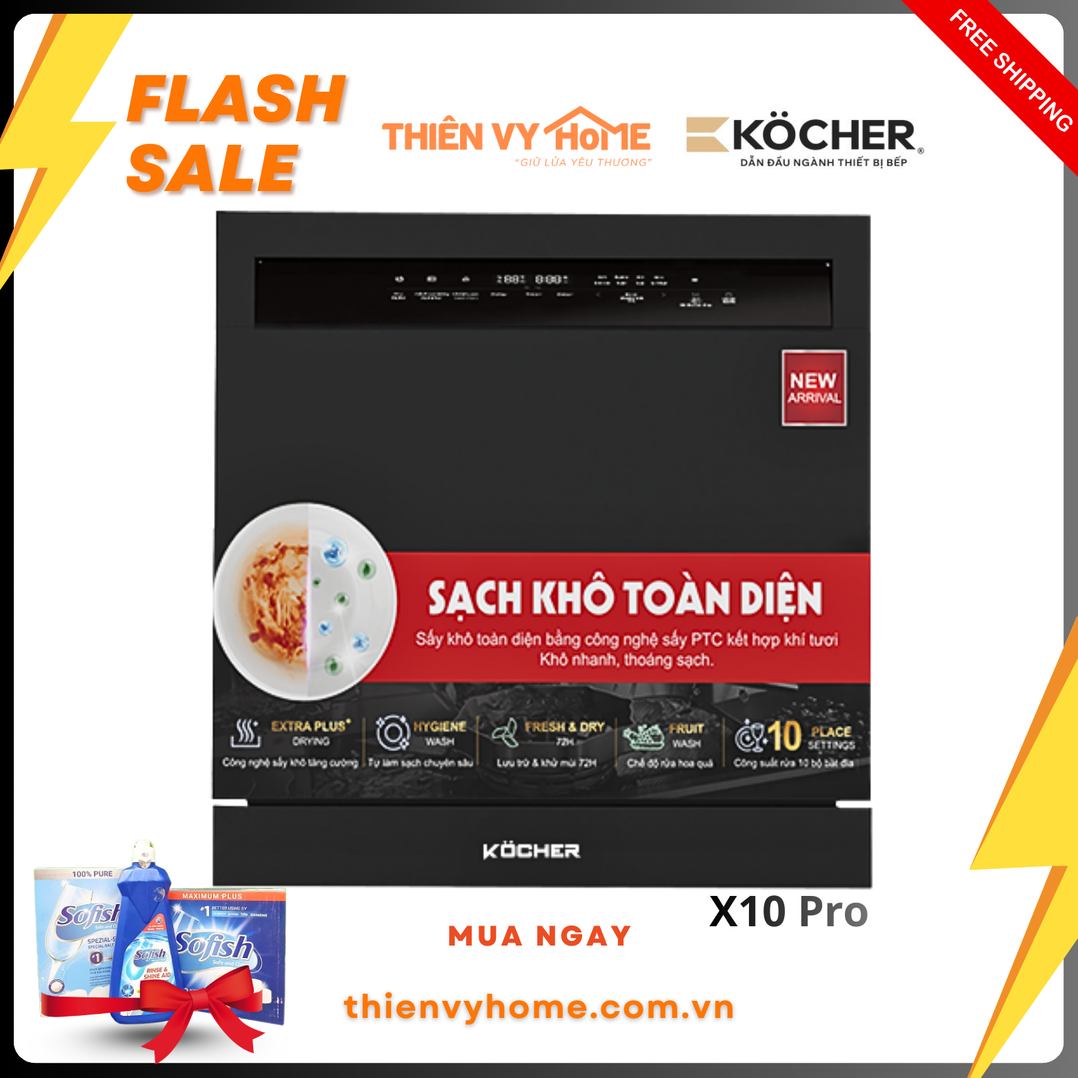 Máy Rửa Chén Kocher X10 Pro – Giải Pháp Rửa Sạch, Sấy Khô & Diệt Khuẩn Toàn Diện Cho Gia Đình Trẻ