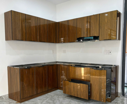 Thi công tủ bếp inox 304 cánh kính 9 có thể tùy chỉnh theo nhiều kiểu dáng: