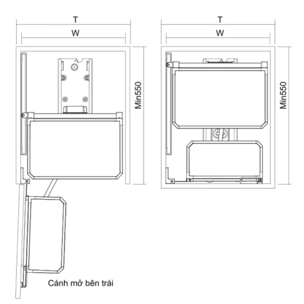 - Kích thước sản phẩm: 555R x 500S x (≥1780)C mm