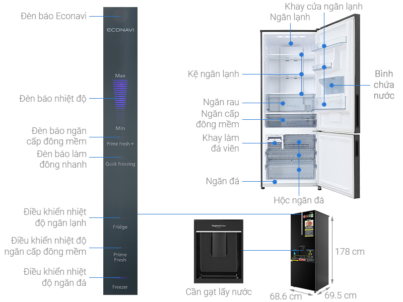 - Ngăn cấp đông mềm Prime Fresh+: Bảo quản thực phẩm ở nhiệt độ -3 độ C, chỉ làm đông nhẹ trên bề mặt, giữ nguyên dinh dưỡng và độ tươi ngon, không cần rã đông trước khi chế biến.