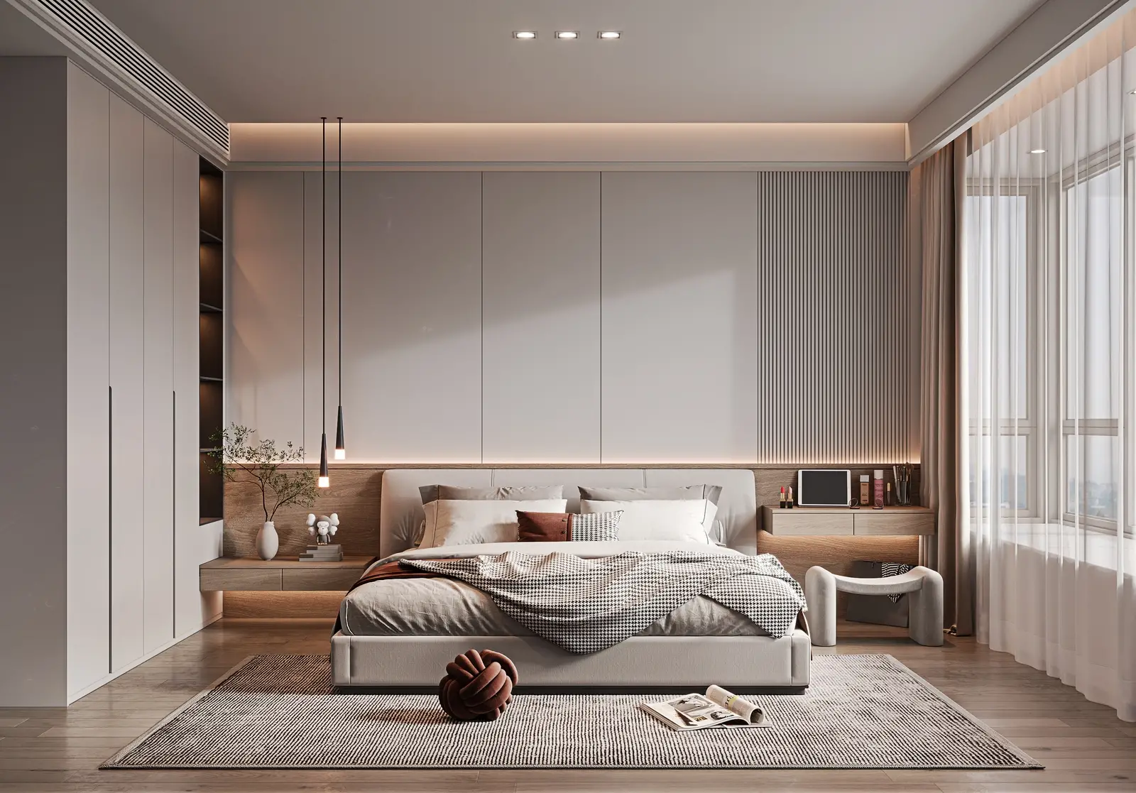 • Phòng ngủ: giường liền tủ, tủ âm tường, ánh sáng tự nhiên.