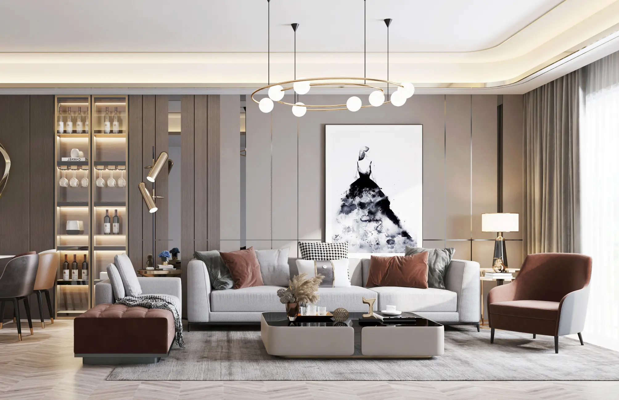 Mẫu phòng khách hiện đại, trẻ trung tại The Opus One Vinhomes Grand Park