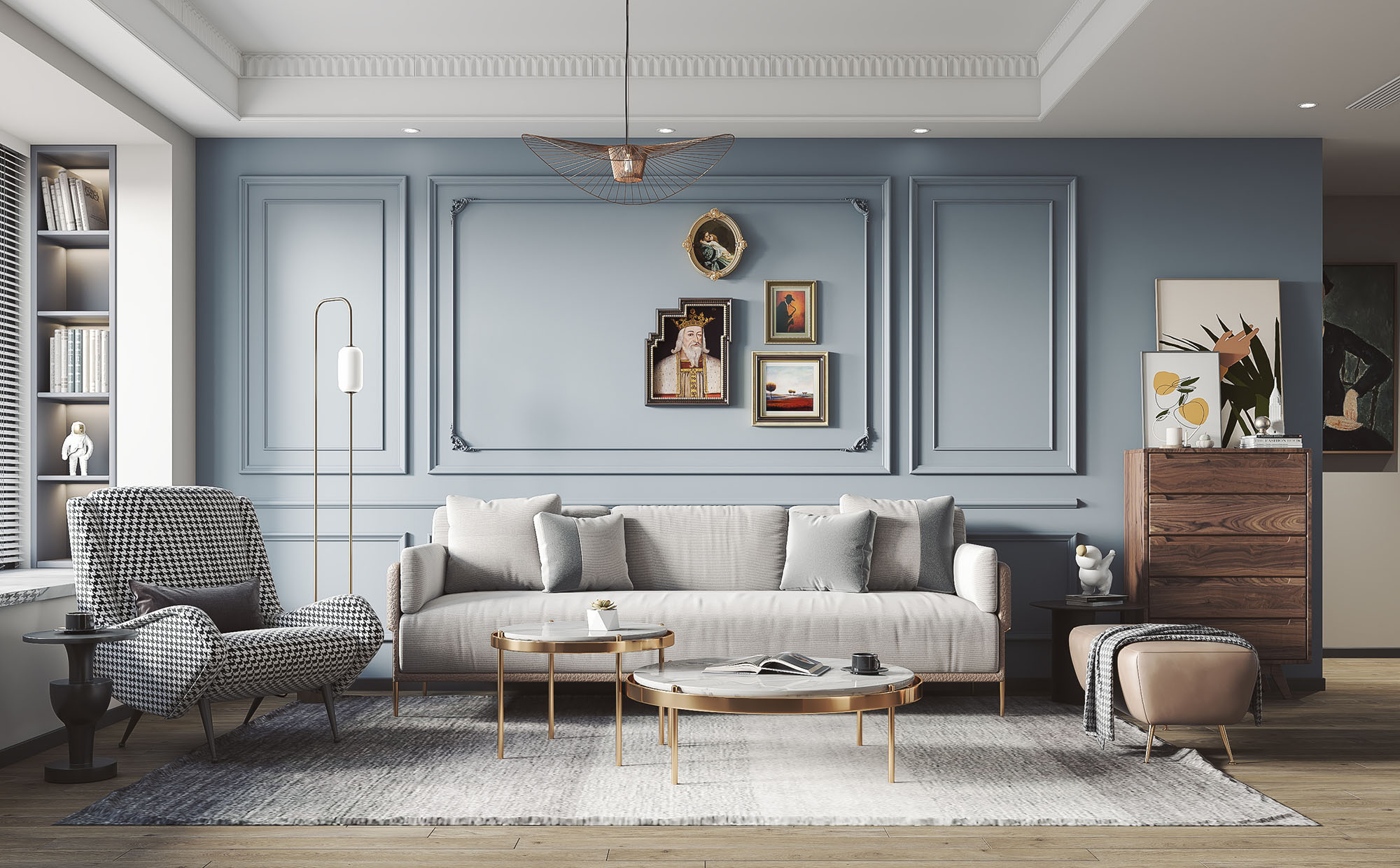 Thi công phòng khách Nhà Bè Tân Cổ Điển