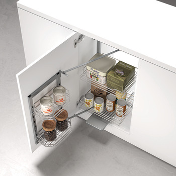 Tủ kho Hafele là phụ kiện tủ bếp cao cấp được thiết kế theo dạng “kho mini” ngay trong bếp, cho phép chứa được nhiều thực phẩm khô, gia vị, đồ hộp, nồi niêu hoặc vật dụng nhà bếp. Tất cả đều được bố trí trên các khay kéo linh hoạt – mở ra là nhìn rõ 100%.
